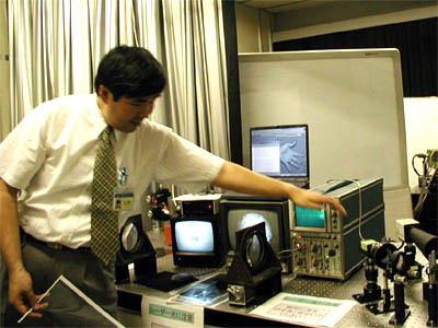 電子回路ではなく、光を使用した計算機。超高速の画像処理が可能になるそうです。ブースでは、従来型のコンピューターが数十秒かかる画像解析が、一瞬で終わる様子が紹介されました。