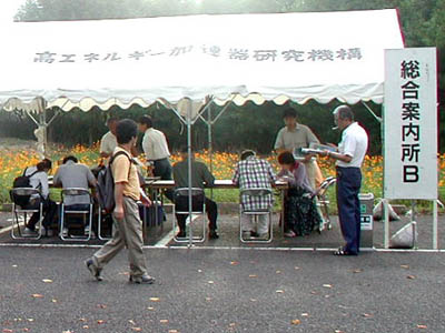 9月15日、つくば市大穂の文部科学省高エネルギー加速器研究機構の一般公開が実施されました。つくばセンターからの送迎バスのほか、機構内を巡回するバスもチャーターされ、広大な機構内は、科学好きの一般者だけでなく、多数の家族連れで、にぎわいました。敷地が広大なため、総合案内所は、正面入り口と駐車場のそばの2ヶ所に設置されていました。 機構内では、19ヶ所の会場で、研究成果や実験施設の紹介が行われたほか、講演会や子供向けの科学教室等も開催されました。一部を紹介しましょう。 | |