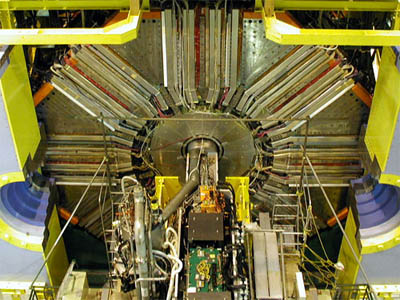 2001年8月、ノーベル賞クラスといわれる実験結果が得られた実験施設です。2本のリング(青と緑の部分)の中を、加速された電子と陽電子が回っています。リングの長さは3km。当日は、200mほど、リングに沿って歩くことが出来ました。加速された電子と陽電子を衝突させると、B中間子・反B中間子のペアが大量に発生します。Bファクトリーという名前はここから来ています。BELLE測定器は、衝突で発生した粒子の運動量やエネルギーを精密に測定するための装置です。14カ国300人以上の研究者によって開発されました。 | |