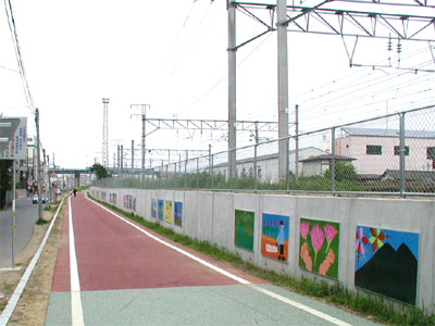 起点となる土浦駅。線路沿いに展示された子供達の絵が目に鮮やか。